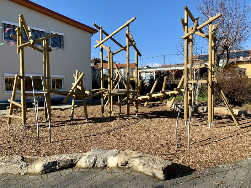 Ein großes Klettergerüst mit zwei Rutschen erfreut sich in jeder Pause großer Beliebtheit. Auch die Tischtennisplatte vor dem Mensagebäude wird regelmäßig bespielt.