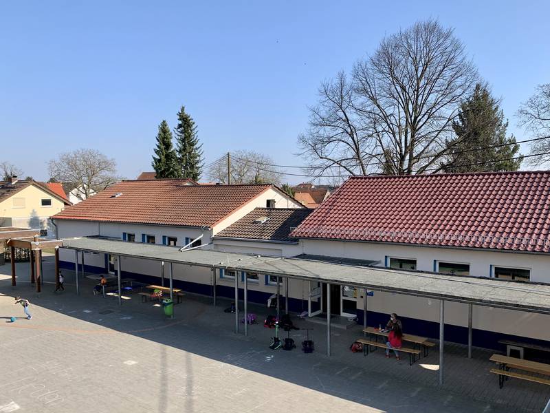 Seit dem Sommer 2021 wird der Schulhof von vier Gebäuden umringt. Im Neubau leben und lernen im aktuellen Schuljahr unsere ersten und vierten Klassen. Im "alten" Neubau wohnen die beiden zweiten Klassen. Die beiden dritten Klassen lernen das Rechnen, Schreiben und Lesen neben der Betreuenden Grundschule, dem Sekretariat, den Lehrerinnen und dem Schulleiter im ältesten Gebäude der Schule.